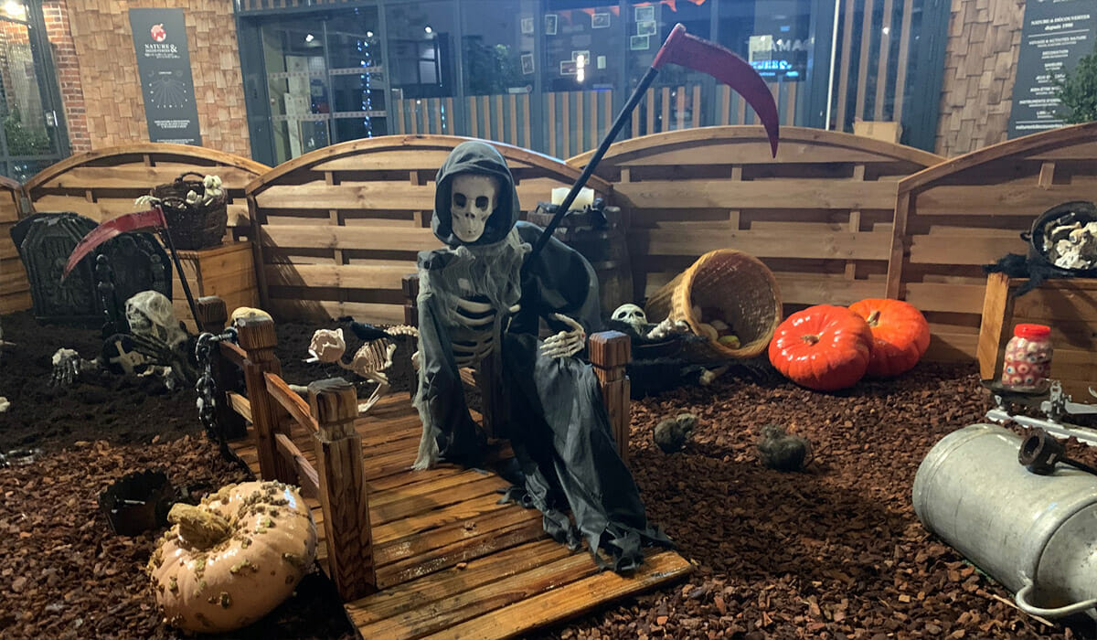 Décoration sur la thématique Halloween, ses sorcières, ses citrouilles et ses fantômes